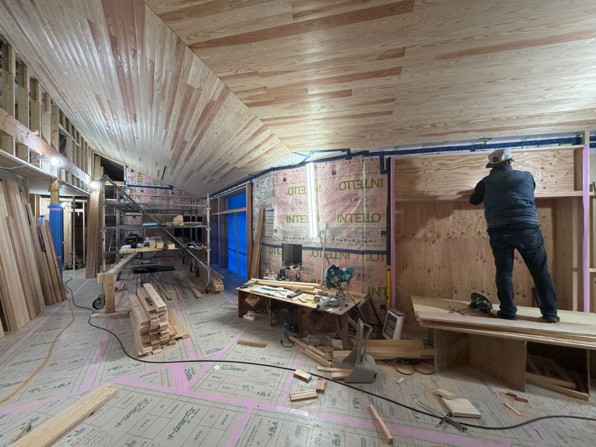 大工さんは服装が軽くなり、作業のペースが上がっています。