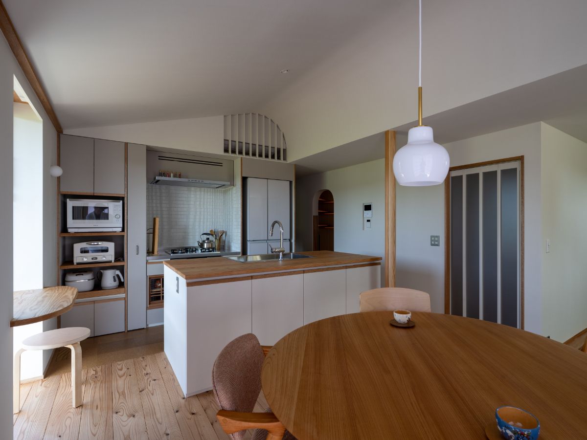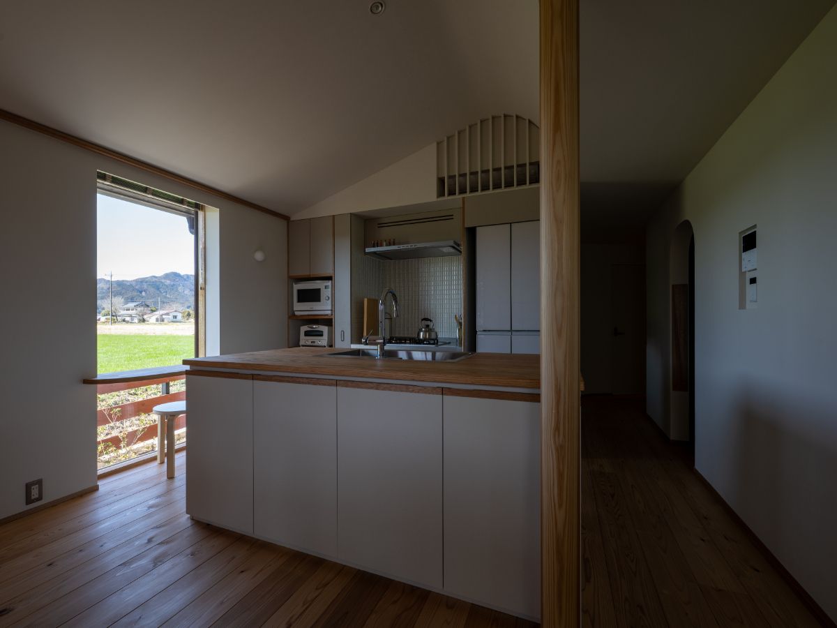 外観はくの字型が特徴的で、面積や高さを抑えた小ぶりさがなんとも愛らしい佇まいとなりました。
