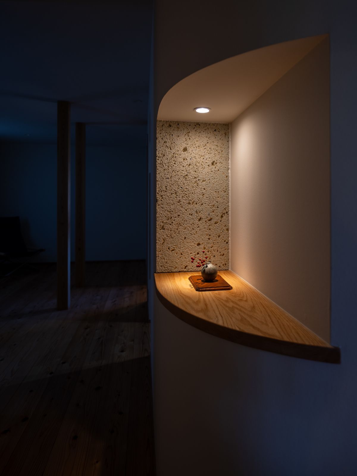 開ける閉じるの明暗をはっきりさせ、壁に寄り添いつつ視界は外へと抜けるような、ONOFFを自由に個人レベルで決められる。